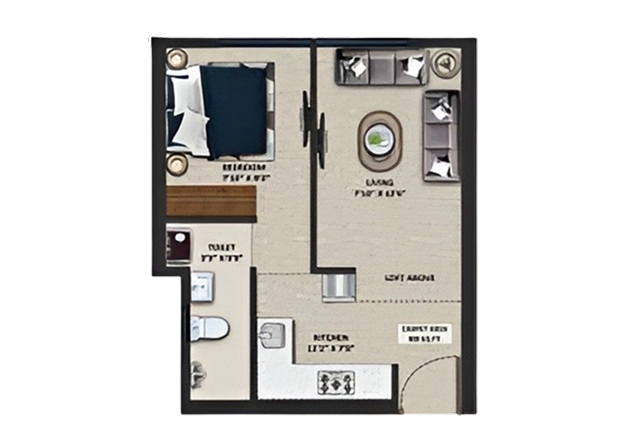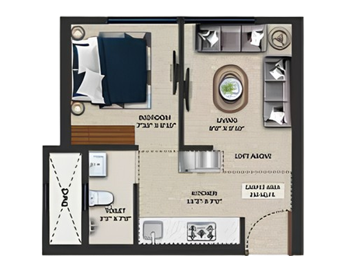 This 1 BHK home spans 250 sq. ft. and is thoughtfully designed to maximize space without compromising on comfort or style. It features a cozy living area, a private bedroom, a modern modular kitchenette, and a well-appointed bathroom. Ideal for young professionals and couples, the residence offers a smart urban lifestyle that blends functionality, elegance, and ease of living.